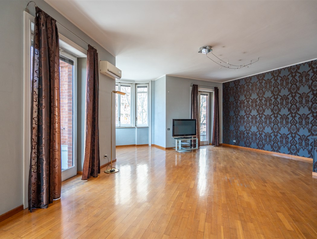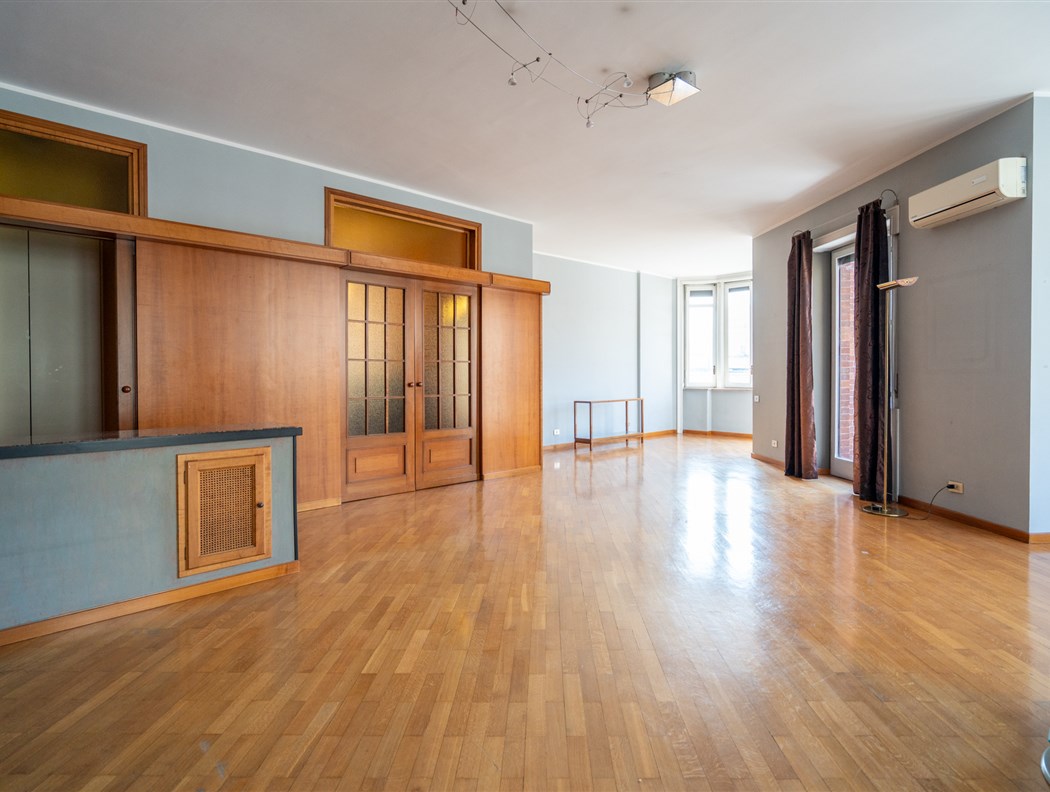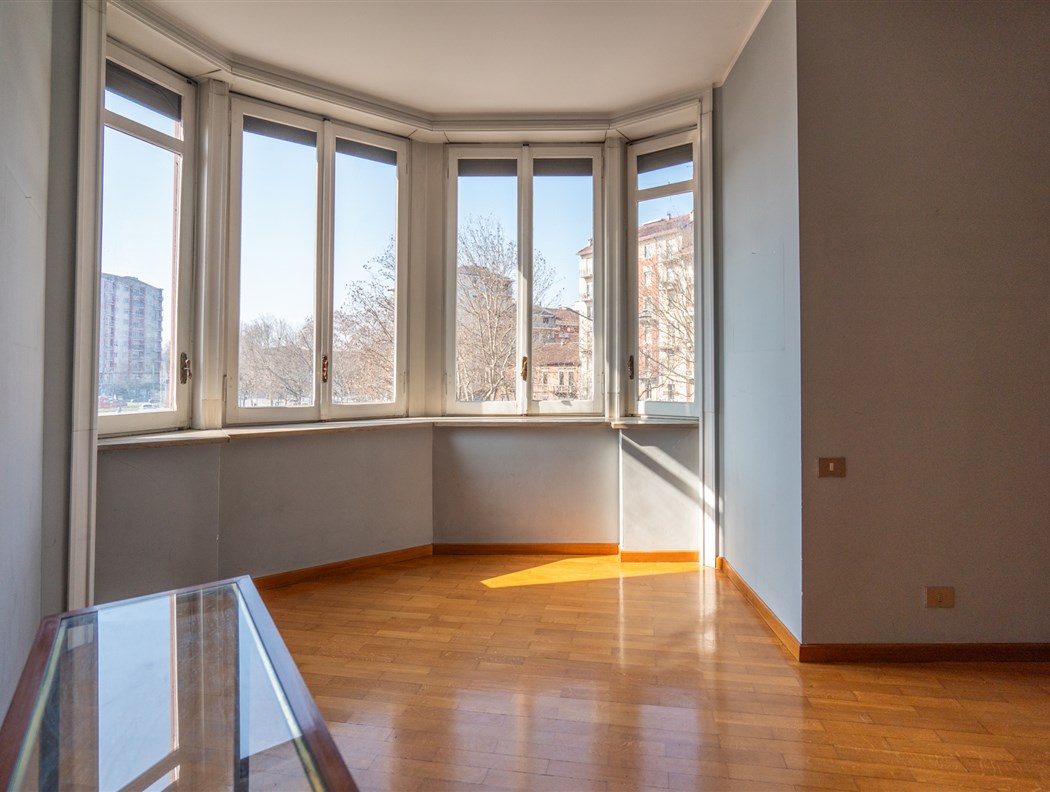 In un elegante e prestigioso edificio progettato dall'architetto De Rossi, caratterizzato da una facciata in paramano, con portineria, giardino condominiale e doppi ascensori, proponiamo un ampio appartamento con terrazzino affacciato sul cortile interno. L'abitazione si compone di un ingresso che conduce a un salone angolare, arricchito da due bow-window con vista su Corso Turati. Ampia cucina abitabile, tre camere da letto, due bagni. Possibilità di realizzare un terzo bagno. Completa la proprietà una cantina. Gli interni sono rifiniti con pavimentazioni in marmo nella zona giorno, resina in cucina e parquet nelle camere da letto. L'appartamento è dotato di porta blindata, impianto antifurto e serramenti in legno. Il riscaldamento è a pavimento. Il terrazzino, che si affaccia sul tranquillo cortile condominiale, garantisce privacy e una perfetta fruibilità degli spazi esterni. Vi sono inoltre cinque balconi che conferiscono all'appartamento maggiore luminosità, offrendo spazi esterni aggiuntivi per l’utilizzo quotidiano. La posizione è ideale, a pochi passi dal centro città, vicino all'Ospedale Mauriziano e comoda per i supermercati Carrefour ed Esselunga di Corso Bramante. La zona è ben servita dai mezzi pubblici, rendendo gli spostamenti facili e rapidi. Possibilità di un box auto singolo con richiesta a parte.