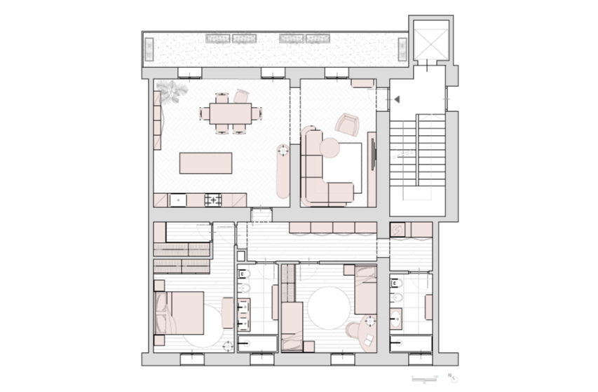 Un prestigioso palazzo dell’800, in consegna a luglio 2026 trasformato in una residenza tecnologica e moderna grazie ad una radicale e profonda ristrutturazione con 30 unità abitative. App.4.1 Appartamento composto di soggiorno, ampia cucina, due camere matrimoniali con cabina armadi, doppi servizi finestrati e lavanderia. L’immobile ha doppio affaccio e la zona giorno gode di uno spazioso balcone su interno cortile con splendida vista su Mole. I servizi offerti del fabbricato comprendono videosorveglianza, palestra, distributore di acqua potabile refrigerata, lockers, bookcrossing, ciclorimessa attrezzata ed altro ancora, il tutto integrato con impianto di domotica. SMART HOUSE VITTORIO 34 è la seconda iniziativa che vede protagonisti Torchio & Daghero, impresa edile torinese specializzata da quattro generazioni in costruzioni e ristrutturazioni e RED Group, società americana d'investimento e di sviluppo immobiliare con un'esperienza ventennale nel real estate. Tutte le informazioni contenute nel presente documento sono da considerarsi indicative e non rappresentano elemento contrattuale.