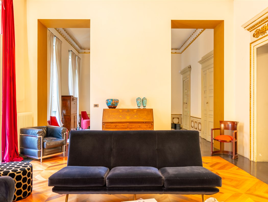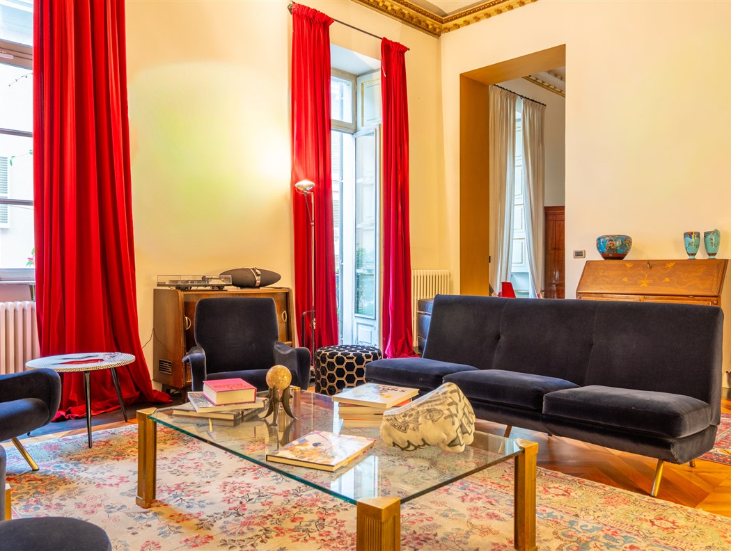 Nel cuore dell’esclusivo quartiere Borgo Nuovo, nel tratto finale di Via Mazzini, a pochi passi da Via della Rocca e dal Parco del Valentino, proponiamo in vendita un elegante appartamento di rappresentanza situato nel celebre Palazzo Casorati, storico edificio ottocentesco che fu dimora e studio del famoso pittore. L’appartamento si trova al secondo piano (primo piano nobile) con tripla esposizione e viene proposto così suddiviso: ingresso principale su un ampio corridoio di disimpegno, cuore distributivo dell’abitazione, che conduce ad un salone di rappresentanza collegato alla sala da pranzo, camera studio/libreria, cucina abitabile, suite padronale con cabina armadio, due ulteriori camere di cui una con annessa zona studio/cabina armadi e area TV , tre bagni, balconi lato Via Mazzini ed interno cortile, locali accessori e disimpegni funzionali. L'immobile è stato oggetto di una accurata ristrutturazione nel 2005, che ha sapientemente valorizzato gli elementi architettonici originali integrandoli con dettagli moderni e di design tra cui: Pavimenti in parquet d’epoca e seminato accostati a lastre effetto metallo dal design contemporaneo. Soffitti alti, impreziositi da stucchi decorativi originali, tipici delle dimore signorili dell’Ottocento. Porte antiche con sovrapporte in legno intagliato di grande impatto scenico. Camini d’epoca, riscaldamento autonomo, aria condizionata autonoma nella camera padronale, impianto antifurto.