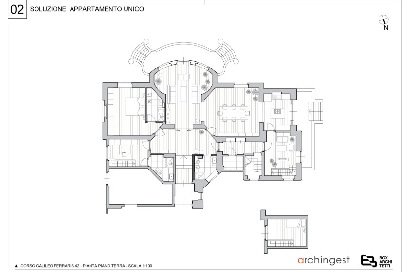 Ai confini dell’isola pedonale, in uno degli indirizzi più iconici ed ambiti della Crocetta, proponiamo una residenza di straordinaria eleganza: un appartamento di charme inserito in un raffinato stabile d’epoca, arricchito da un esclusivo giardino privato che rappresenta un vero privilegio in città. L’ingresso indipendente introduce ad una abitazione unica, nel suo genere, con diverse potenzialità di utilizzo. L’immobile si presenta con un’ampia zona giorno al piano terra composta da ampio ingresso che si affaccia su un salone dalla forma particolare, sala conversazione, sala da pranzo, cucina, questi ambienti sono collegati tramite due scalinate in pietra al giardino; abbiamo inoltre una camera padronale con servizio privato e camera con soppalco ed una lavanderia. Al piano superiore una zona notte composta da due camere da letto oltre servizio ed un’ampia zona seminterrata con spazi versatili da plasmare secondo le proprie esigenze. Grazie alla sua conformazione, l’immobile si presta non solo come unico appartamento di charme ma anche come ufficio di rappresentanza o come soluzione frazionabile in due unità indipendenti da combinare secondo le diverse esigenze. Completa la proprietà un box auto e l’utilizzo di due posti auto.