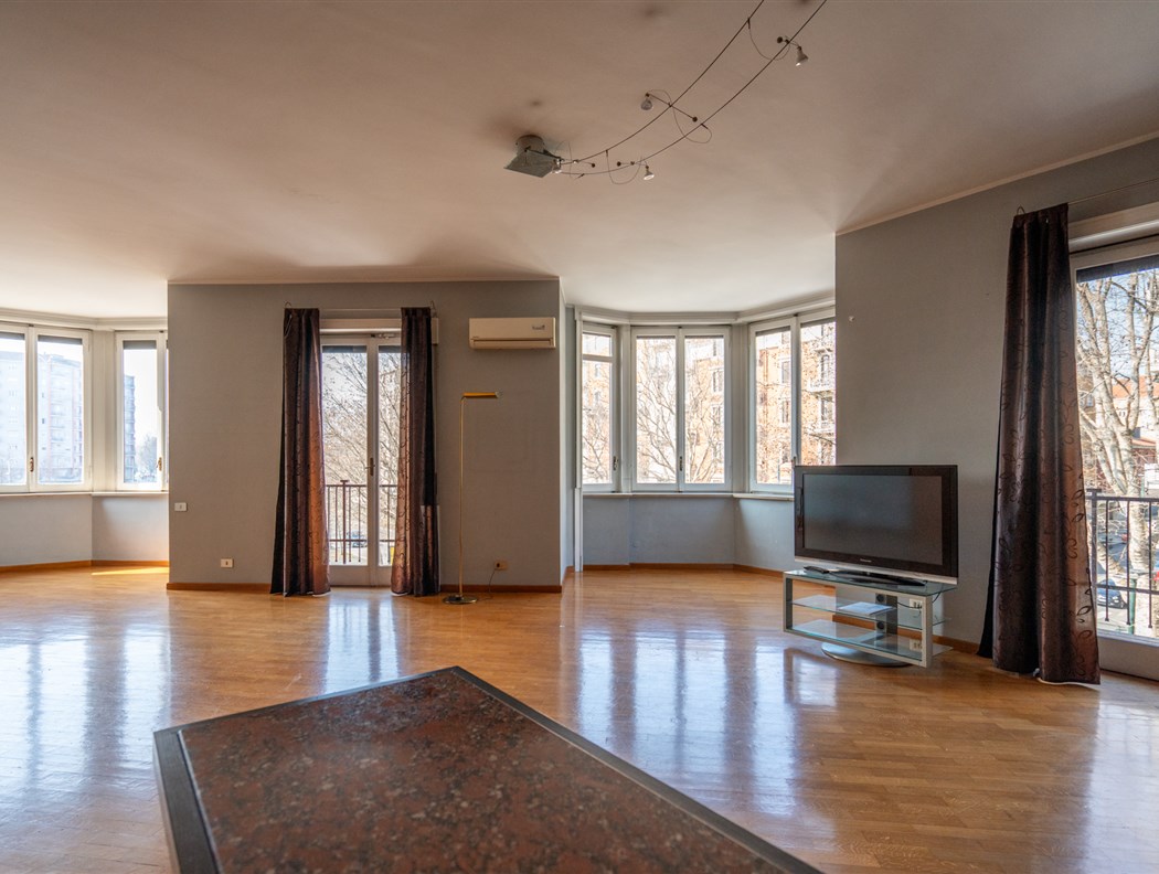 In un elegante e prestigioso edificio progettato dall'architetto De Rossi, caratterizzato da una facciata in paramano, con portineria, giardino condominiale e doppi ascensori, proponiamo un ampio appartamento con terrazzino affacciato sul cortile interno. L'abitazione si compone di un ingresso che conduce a un salone angolare, arricchito da due bow-window con vista su Corso Turati. Ampia cucina abitabile, tre camere da letto, due bagni. Possibilità di realizzare un terzo bagno. Completa la proprietà una cantina. Gli interni sono rifiniti con pavimentazioni in marmo nella zona giorno, resina in cucina e parquet nelle camere da letto. L'appartamento è dotato di porta blindata, impianto antifurto e serramenti in legno. Il riscaldamento è a pavimento. Il terrazzino, che si affaccia sul tranquillo cortile condominiale, garantisce privacy e una perfetta fruibilità degli spazi esterni. Vi sono inoltre cinque balconi che conferiscono all'appartamento maggiore luminosità, offrendo spazi esterni aggiuntivi per l’utilizzo quotidiano. La posizione è ideale, a pochi passi dal centro città, vicino all'Ospedale Mauriziano e comoda per i supermercati Carrefour ed Esselunga di Corso Bramante. La zona è ben servita dai mezzi pubblici, rendendo gli spostamenti facili e rapidi. Possibilità di un box auto singolo con richiesta a parte.