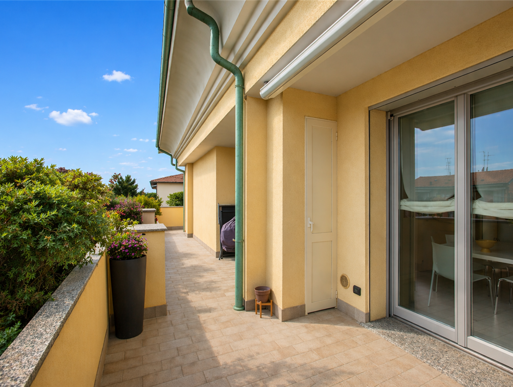 ESCLUSIVO ATTICO E SUPERATTICO SU DUE LIVELLI CON TERRAZZI E AMPI BOXES Gessate – Via Pasubio,7 in elegante e curata palazzina del 2013, proponiamo in vendita una prestigiosa soluzione abitativa di mq.225 circa disposta su due livelli (secondo e terzo piano), ideale per chi cerca ampi spazi, comfort e riservatezza. L’ingresso si apre su un luminoso e ampio living, suddiviso tra zona soggiorno e zona pranzo, con accesso diretto allo splendido terrazzo di mq.100 circa, vero cuore della casa: uno spazio perfetto per momenti di relax e convivialità all’aperto. Il piano è completato da disimpegno, una camera, un bagno e una comoda lavanderia. Al piano superiore, caratterizzato da eleganti travi a vista in legno, troviamo la zona notte composta da quattro spaziose camere matrimoniali tutte con accesso ai balconi di mq. 19 circa, due ampi bagni (uno con doccia e uno con doccia e vasca idromassaggio), oltre a una pratica stanza armadio. Completa il piano un grazioso terrazzo di 12 mq. circa. Pavimentazione in ceramica, scala interna realizzata in pietra Serena, finestre in legno/doppio vetro con apertura a vasistas dotate di zanzariere, tapparelle elettriche, sistema di domotica integrato. Riscaldamento centralizzato a pavimento con gestione autonoma, impianto di condizionamento freddo/caldo autonomo, videocitofono, porta blindata e antifurto. Lo stabile è dotato di cappotto. La proprietà include inoltre un’ampia cantina di 15 mq circa. Ampio box doppio di 45 mq circa, prezzo richiesto €.50.000,00 e un secondo ampio box di 17 mq circa, prezzo richiesto €.20.000,00. Soluzione unica nel suo genere, perfetta per famiglie numerose o per chi desidera vivere in un contesto moderno, raffinato e funzionale. L’immobile si trova in una zona tranquilla e ben curata, caratterizzata da costruzioni recenti, aree verdi e un’atmosfera riservata e piacevole. Nelle immediate vicinanze sono presenti supermercati, scuole, farmacie, negozi di quartiere, centri sportivi, rendendo la zona particolarmente comoda e funzionale nella vita di tutti i giorni. Punto di forza assoluto della posizione è la vicinanza alla fermata Gessate della Metropolitana Linea M2 (Verde), capolinea della linea che collega direttamente il comune con Milano e con i principali snodi cittadini, tra cui Loreto, Stazione Centrale, Garibaldi, Cadorna e Porta Genova. La stazione è inoltre servita da linee autobus extraurbane con collegamenti verso Melzo, Monza, Cassano d’Adda, Inzago e i principali comuni limitrofi, oltre alla presenza di comodi parcheggi pubblici utili per chi utilizza l’auto e desidera proseguire con i mezzi. Una posizione strategica che unisce perfettamente tranquillità residenziale, servizi e collegamenti rapidi con Milano.