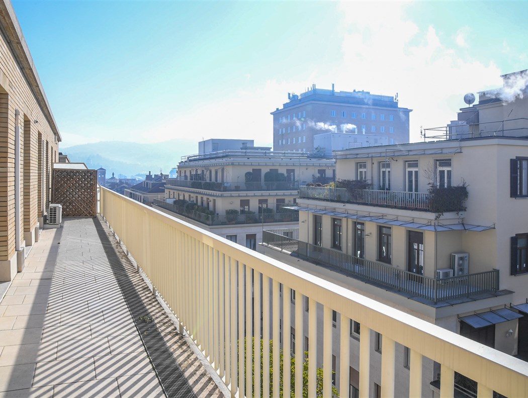 Residenza esclusiva su tre livelli con terrazzi panoramici e box doppio – Palazzo San Carlo Nel cuore del centro di Torino, all’interno del prestigioso Palazzo San Carlo, stabile signorile completamente rivisto nel 2015, dotato di portineria e doppi ascensori, proponiamo in locazione esclusiva residenza di circa 250 mq disposta tra il 5°, 6° e 7° piano. L’immobile si sviluppa principalmente al 5° piano, con ingresso su ampio soggiorno, sala da pranzo, cucina abitabile, quattro camere da letto oltre a studio e cinque bagni. La distribuzione degli spazi è razionale ed elegante, con ambienti ampi e luminosi. Essendo libero su tre lati, l’appartamento gode di eccellente esposizione e luminosità naturale. Da qualsiasi ambiente del piano è possibile accedere al primo grande terrazzo, che circonda l’abitazione e rappresenta un naturale prolungamento degli spazi interni. Attraverso ascensore si accede direttamente al 6° piano, dove troviamo un secondo livello con piccolo soggiorno e accesso al secondo ampio terrazzo. Dal terrazzo del sesto piano, tramite scala interna, si raggiunge il 7° piano, ultimo livello dello stabile, dove è presente un terzo terrazzo panoramico, garantendo massima privacy e uno spazio esterno unico nel suo genere. L’immobile è stato completamente ristrutturato e viene locato arredato, con finiture di alto livello e arredi coerenti con il contesto elegante dello stabile. Completa la proprietà la possibilità di locare un box auto doppio al piano seminterrato. Soluzione di rappresentanza, ideale per chi ricerca ampi spazi, terrazzi esclusivi e un contesto residenziale di alto profilo nel centro città.
