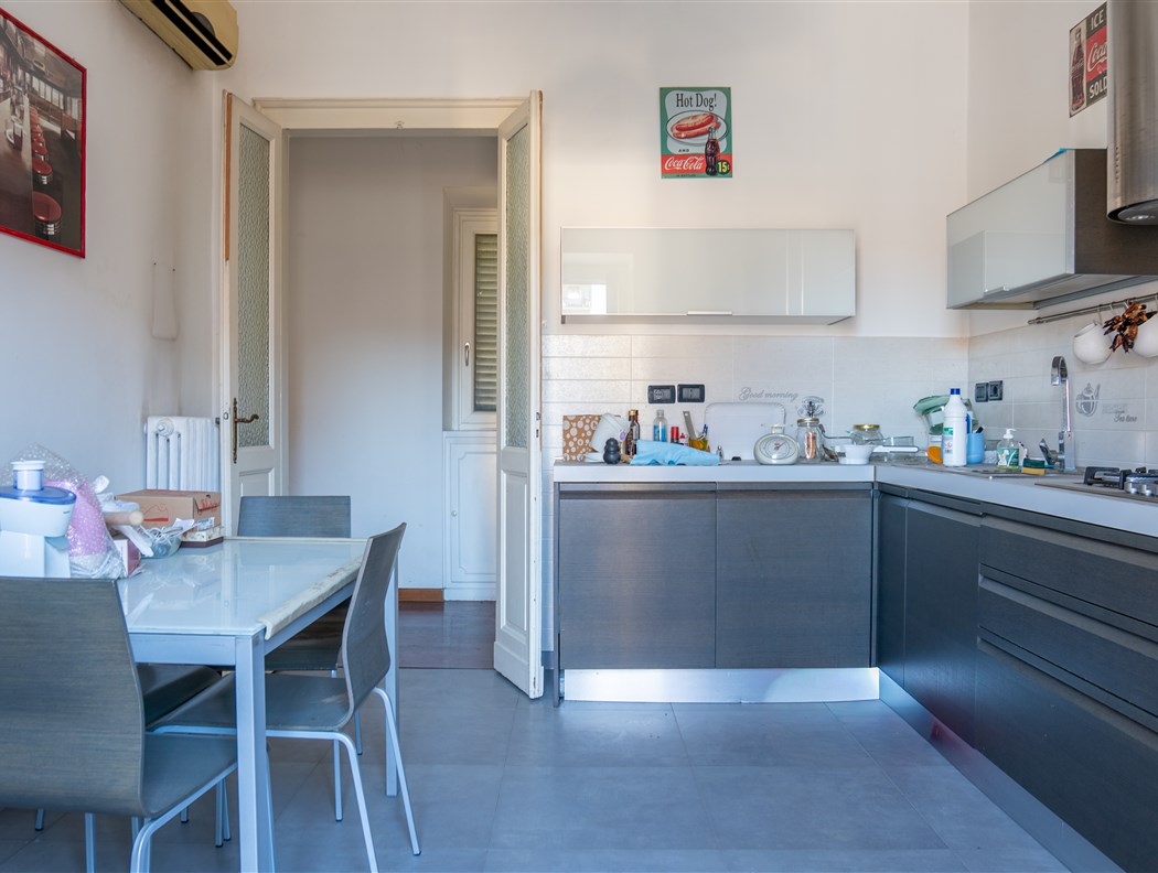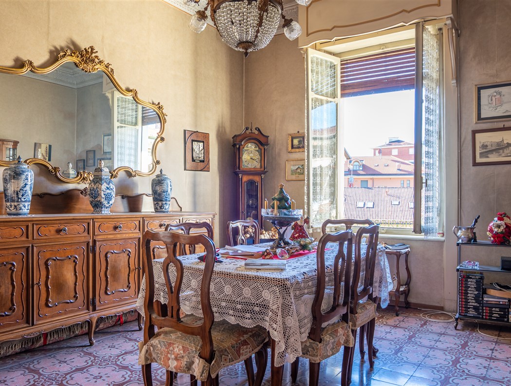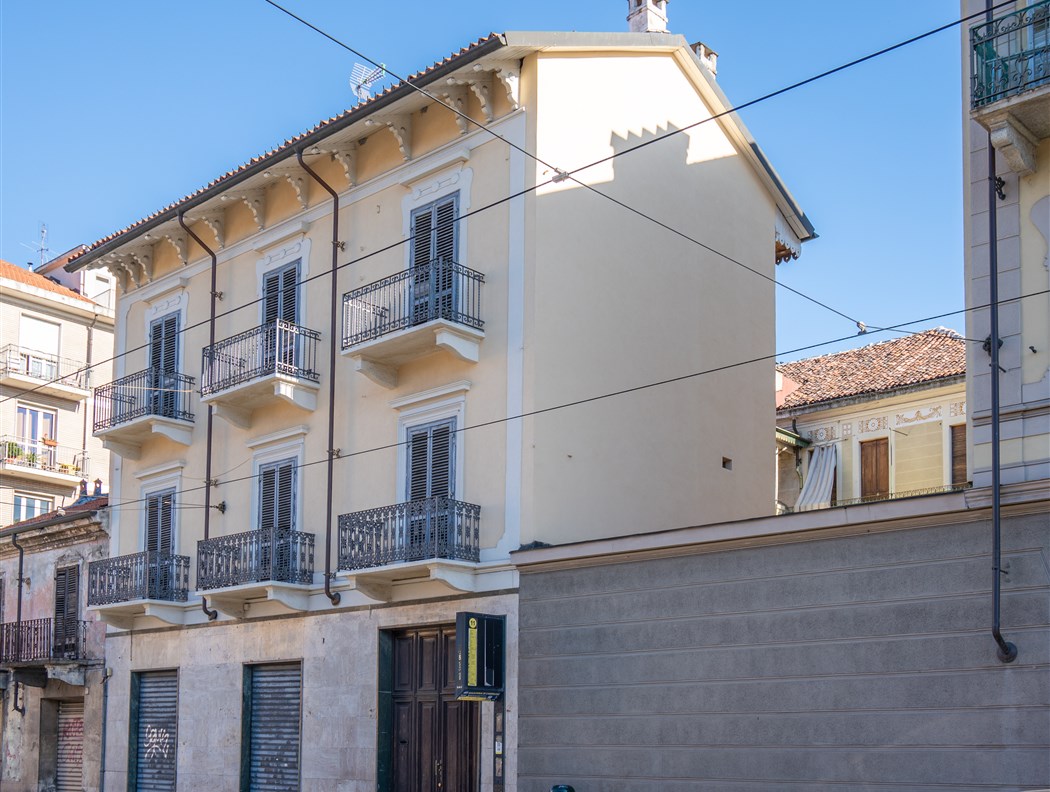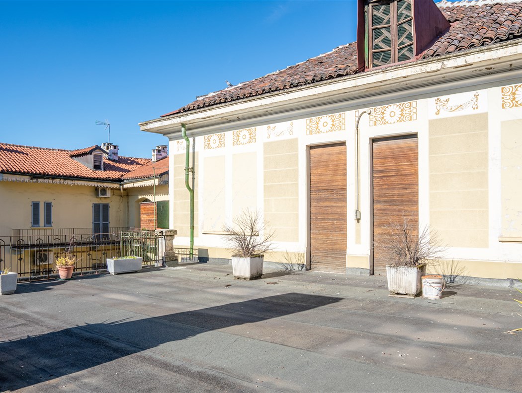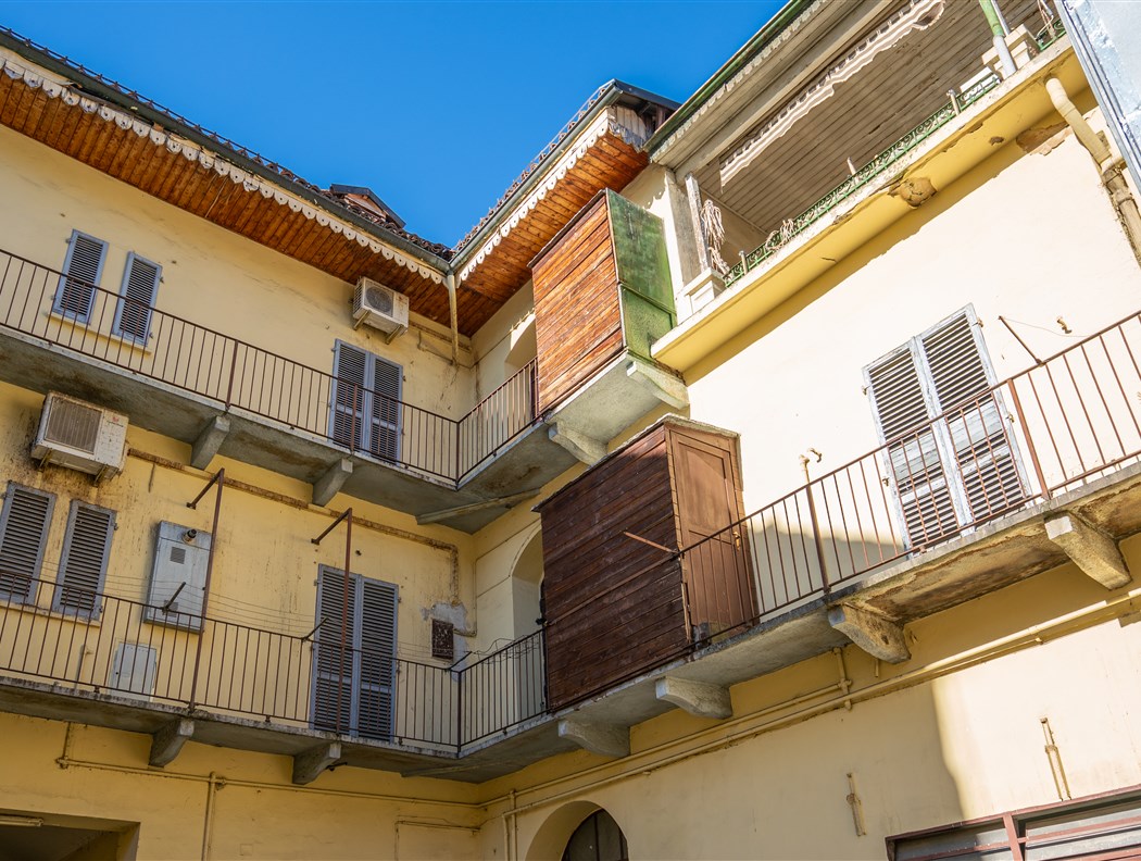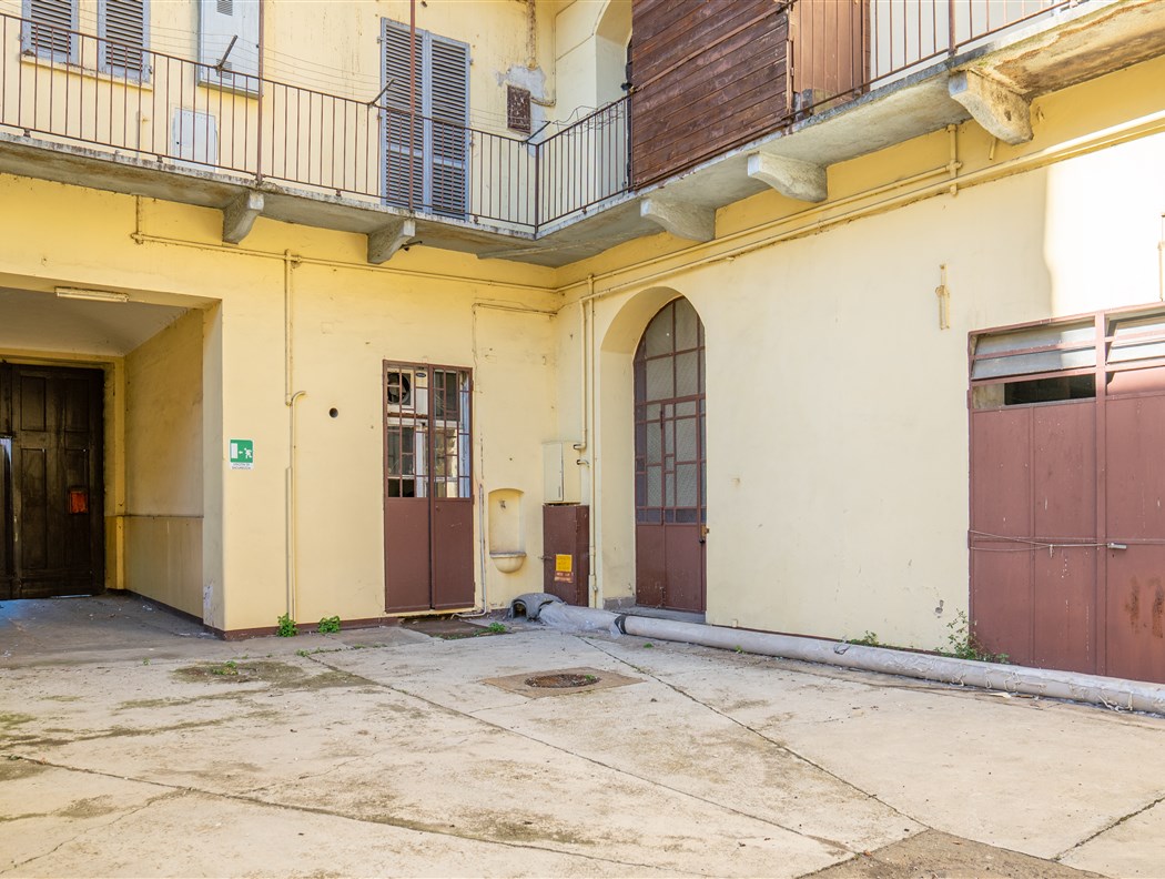 Edificio cielo terra epoca inizio '900 sempre appartenuto alla stessa famiglia. L'immobile è così composto: - Al piano terra un negozio con 2 vetrine e servizi, un monolocale sul cortile con annessa cantina da 60 mq come tavernetta o altro. - Al primo piano: ampio bilocale in stato originale con caminetto e dettagli epoca; appartamento di 90 mq collegato da scala interna con altro appartamento di mq 90 al piano superiore, entrambi ristrutturati nel 2009, con infissi nuovi, soffitti voltati ed affrescati ed aria condizionata. - Al secondo piano: ampio appartamento in stato originale, con 5 stanze + servizi e cucina, abitato sino al 2022. Questo appartamento ha un lastrico solare di circa 65 mq ed un portico coperto di circa 45 mq. Centrale termica funzionante, cantine sane e ampie. Cortile interno con portone carraio ad uso esclusivo da 70 mq circa.